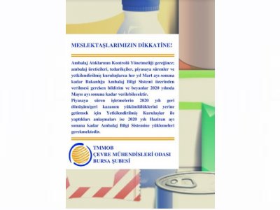 Ambalaj Atıklarının Kontrolü Yönetmeliği gereğince; ambalaj üreticileri, tedarikçiler, piyasaya sürenler ve yetkilendirilmiş kuruluşlarca her yıl Mart ayı sonuna kadar Bakanlığa Ambalaj Bilgi Sistemi üzerinden verilmesi gereken bildirim ve beyanlar 2020 yılında Mayıs ayı sonuna kadar verilebilecektir.