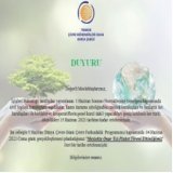 Bu sebeple 5 Haziran Dünya Çevre Günü Çevre Farkındalık Programımız kapsamında 04 Haziran 2021 Cuma günü gerçekleştirmeyi planladığımız "Meslekte Onur Yılı Plaket Töreni" miz ileri bir tarihe ertelenmiştir.