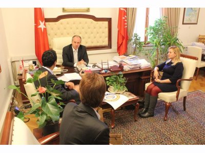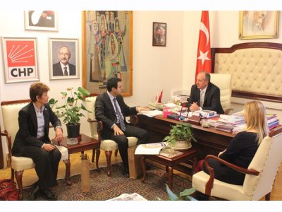 CHP Grup Başkanvekili Muharrem İncenin Meclisteki makam odasında gerçekleşen ziyarette, çeşitli çevre sorunlarının yanı sıra 21 Kasımda yürürlüğe giren yeni "Çevre Görevlisi" yönetmeliği de konuşuldu. İnceye yönetmeliğe dair bilgi veren Genel Başkanımız Baran Bozoğlu, ortaya çıkması muhtemel sorunlardan bahsetti. Yönetmeliğin değiştirilmesi için İnceden destek isteyen Genel Başkanımız Bozoğlu, "Biz mücadelemize devam ediyoruz. Bakanlıkla görüşmeler de yapıyoruz. Hukuk yoluyla da hakkımızı arayacağız. Çünkü bu yönetmelikle hem mesleğimiz niteliksizleştiriliyor hem de teknik bilgiden yoksun insanların çevre denetimi yapmasının önü açılıyor. Yönetmeliğin neresinden tutsanız elinizde kalıyor. Sizin de bu konuda desteğinizi bekliyoruz. " diye konuştu. Genel Başkanımızın destek çağrısına olumlu yanıt veren CHP Grup Başkanvekili Muharrem İnce de, konuyla ilgileneceğini ifade etti.