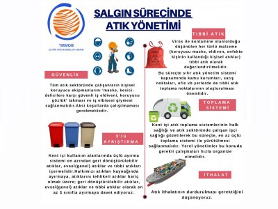 · Belediyelerimizi salgının hızını kontrol altına alacak olan gerekli atık yönetim yaklaşımını ve çalışma ortamını oluşturarak bir an önce uygulamaya çağırıyoruz.