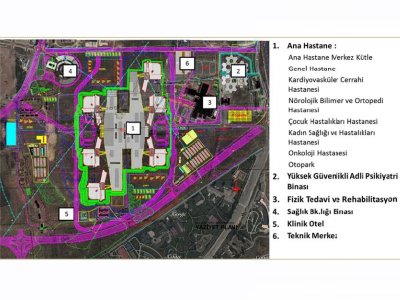 120.000 m2 yani yaklaşık 18 futbol sahası büyüklüğünde bir alanda 3662 yatak kapasiteli bir hastane olarak kurulacaktır. İnşaatına başlanan bu hastanede de Etlik hastanesi gibi 50.000`i aşkın kişinin günlük olarak bölgede sirkülasyonu ön görülmektedir. İnşaat sırasında 7000 işçi çalışacaktır.