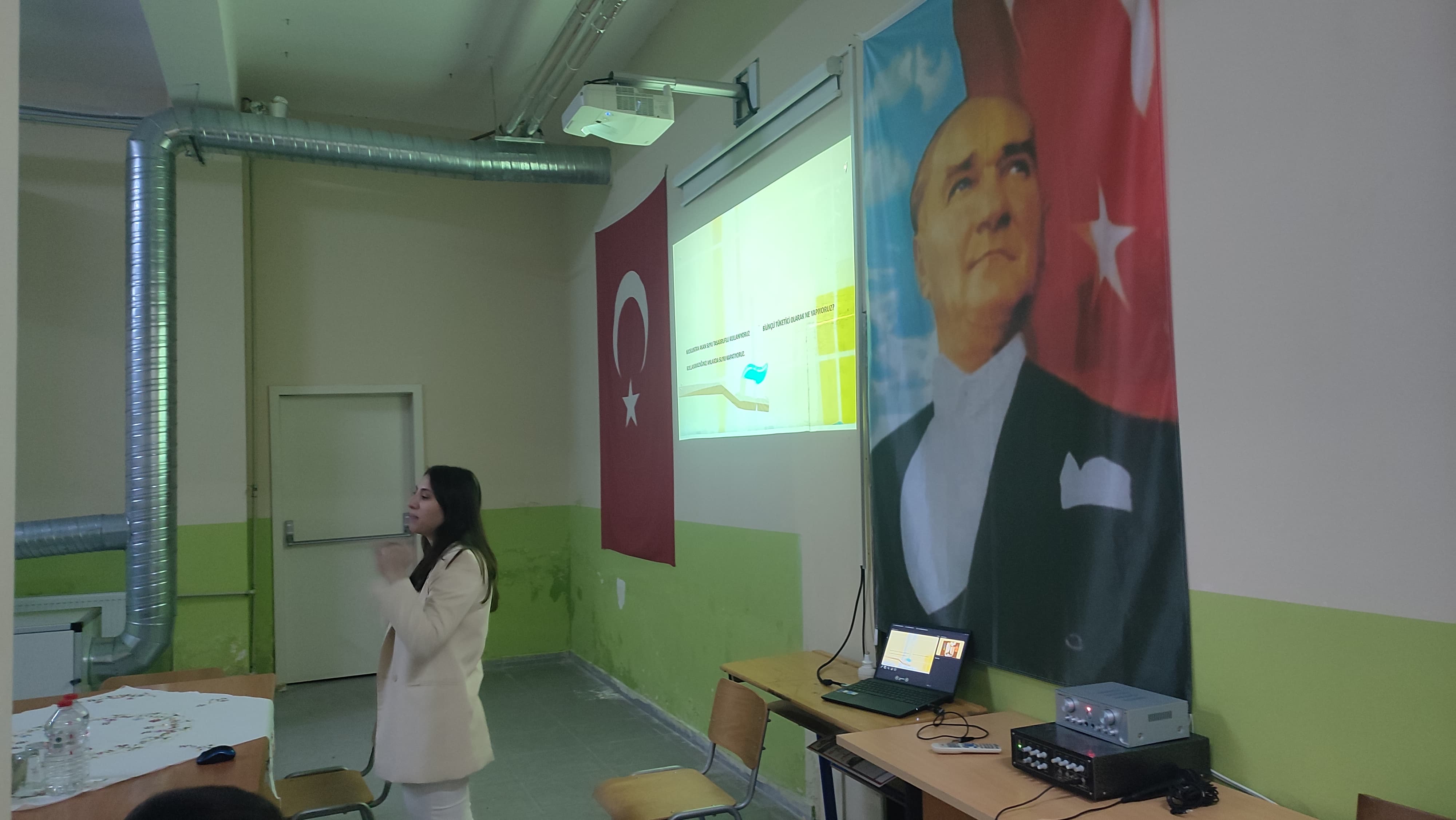 Şube Yönetim Kurulu Üyemiz Gonca KAHYA ile Şube İdari İşler Sorumlumuz Çevre Mühendisi Ömriye BUDAKLI'nın konuşmacı olduğu etkinlik kapsamında öğrencilerde çevre bilincinin oluşturulmasına yönelik çevre, çevre kirliliği, sürdürülebilirlik, enerji tasarrufu, atık yönetimi konularını içeren bilgilendirme sunumu yapılmıştır.