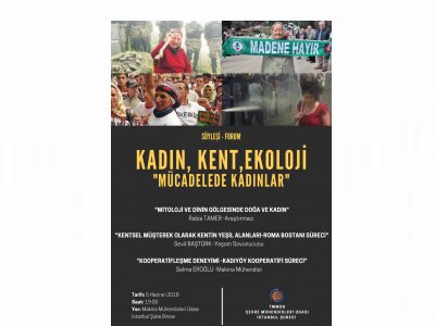 Ekolojik Yıkımla Mücadele Haftası kapsamında gerçekleştireceğimiz SÖYLEŞİ & FORUM KADIN, KENT, EKOLOJİ `MÜCADELEDE KADINLAR` etkinliğine tüm üyelerimiz ve dostlarımızın katılımını bekleriz.