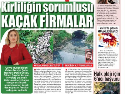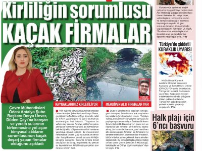 18 Ocak`ta Akdeniz`de Yeni Yüzyıl Gazetesine konuşan Şube Başkanımız Derya Ünver, geçtiğimiz hafta Düden Çayı`nda yaşanan çevre kirliliğine ve balık ölümlerine ilişkin açıklamalarda bulundu. Düden Çayı`nda yaşanan çevre kirliliğinde, çay içinde zerzemin olan fosoptiklerden yer altı suyuna kirliliğin karıştığının tespit edildiğini belirten Ünver, tüm işletmelerin iyi denetlenmesi gerektiğinin altını çizdi. Antalya Valiliği çatısı altında DSİ, ASAT, Büyükşehir Belediyesi, Kepez Belediyesi ile Çevre ve Şehircilik İl Müdürlüğü`nden oluşan bir komisyonun bölgede incelemelerine devam ettiğini vurgulayan Ünver, ‘Lisansız işletmelerin tüm kriterleri yerine getirerek lisans almaları sağlanmalı.` dedi. Açıklamalarında tehlikeli atıklara da dikkat çeken Şube Başkanımız, bazı lisanslı firmaların ise lisans kapsamı dışındaki tehlikeli atıkları geri dönüşüm sürecine dâhil etmeleri sonucu çevre katliamlarının başladığını, bu tesislerden çıkan kimyasal kirliliği yüksek atık suların kanalizasyon sistemine verilmesi veya yeraltına verilmesi sonucu yer altı ve yüzey sularının kirlenmesine neden olduğunu belirtti. Antalya`da birçok işletmenin kaçak sondaj kullandığını belirten Ünver, son bir yılda yer altı su seviyesinin 10 metre çekildiğine işaret ederken, doğal kaynaklarımızı çok dikkatli kullanmamız gerektiğini ve ilerleyen dönemlerde ciddi bir su sorunuyla karşı karşıya kalacağımızı kaydetti. Düden Çayı`nda yaşanan çevre kirliliği konusunda başta Antalya Valiliği olmak üzere Çevre ve Şehircilik İl Müdürlüğü, belediyeler ve DSİ` ye büyük iş düştüğünü belirten Şube Başkanımız Derya Ünver, Çevre Mühendisleri Odası olarak her konuda yetkili kurumlara destek olmaya hazır olduğumuzu belirtti.