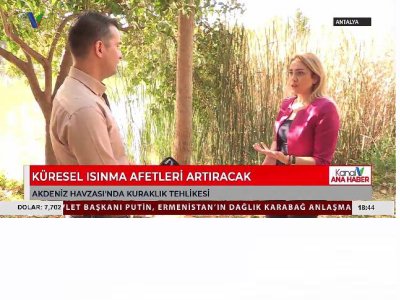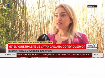 17 Kasım`da Şube Başkanımız Derya Ünver, Kanal V`nin konuğu oldu. İklim değişikliği, küresel ısınma, azalan yağışlara ve bunların insan, canlılar ve bitkiler üzerindeki etkilerine dikkat çeken Ünver, son yıllarda gittikçe azalan yağışların yer altı ve yer üstü su kaynaklarını olumsuz yönde etkilediğini belirtti. Yerel yönetimlerin önderliğinde iklim eylem planlarının hazırlanıp uygulamaya geçirilmesi gerektiğini vurgulayan Ünver, motorlu taşıtlardan ortaya çıkan sera gazı emisyonlarına, iklim değişikliği sonucu yaşanan kuraklık, orman yangınları, şiddetli yağışlar ve hortumlar gibi afetlerin kentin ana geçim kaynağı olan tarım ve turizm için ortaya çıkardığı sorunlara işaret etti. Akdeniz Havzası`ndaki kuraklık tehlikesi ile ilgili açıklamalarda bulunan Ünver, ulusal ve yerel yönetimlerin sera gazı çalışmaları yapma zorunluluğunun yanında her bireyin ihtiyaç fazlası tüketim yapmamak, enerji tasarruflu ürünleri tercih etmek, suyu israf etmemek, atıkları kaynağında ayırmak, çevreyi kirletmemek, orman yangınlarına sebebiyet vermemek gibi sorumluluklarının bulunduğunu belirtti.
