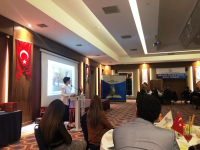Plaket törenine başlamadan önce açılış konuşması yapan Ankara Şube Başkanımız İlkim YİĞİT, Oda olarak geleneksel hale getirdiğimiz bu etkinliği, üstatlarımızla bir araya gelmek açısından önemsiyoruz diyerek, bu kutlamanın sürdürüleceğini söyledi. Yine Çevre Kanununda yapılan değişiklik için Oda olarak verilen mücadeleden bahsetti. Yönetime gelindiğinde hayatı anlamlı kılan güzel işler başarma şevkiyle mesleki değerlerimizin değer kazanması için çok emek verdiklerinden söz eden Şube Başkanımız, bu işleri yaparken çok güzel arkadaşlıklar, dostluklar kazandık. Biz şimdi kocaman bir aile olduk` diye konuştu.
