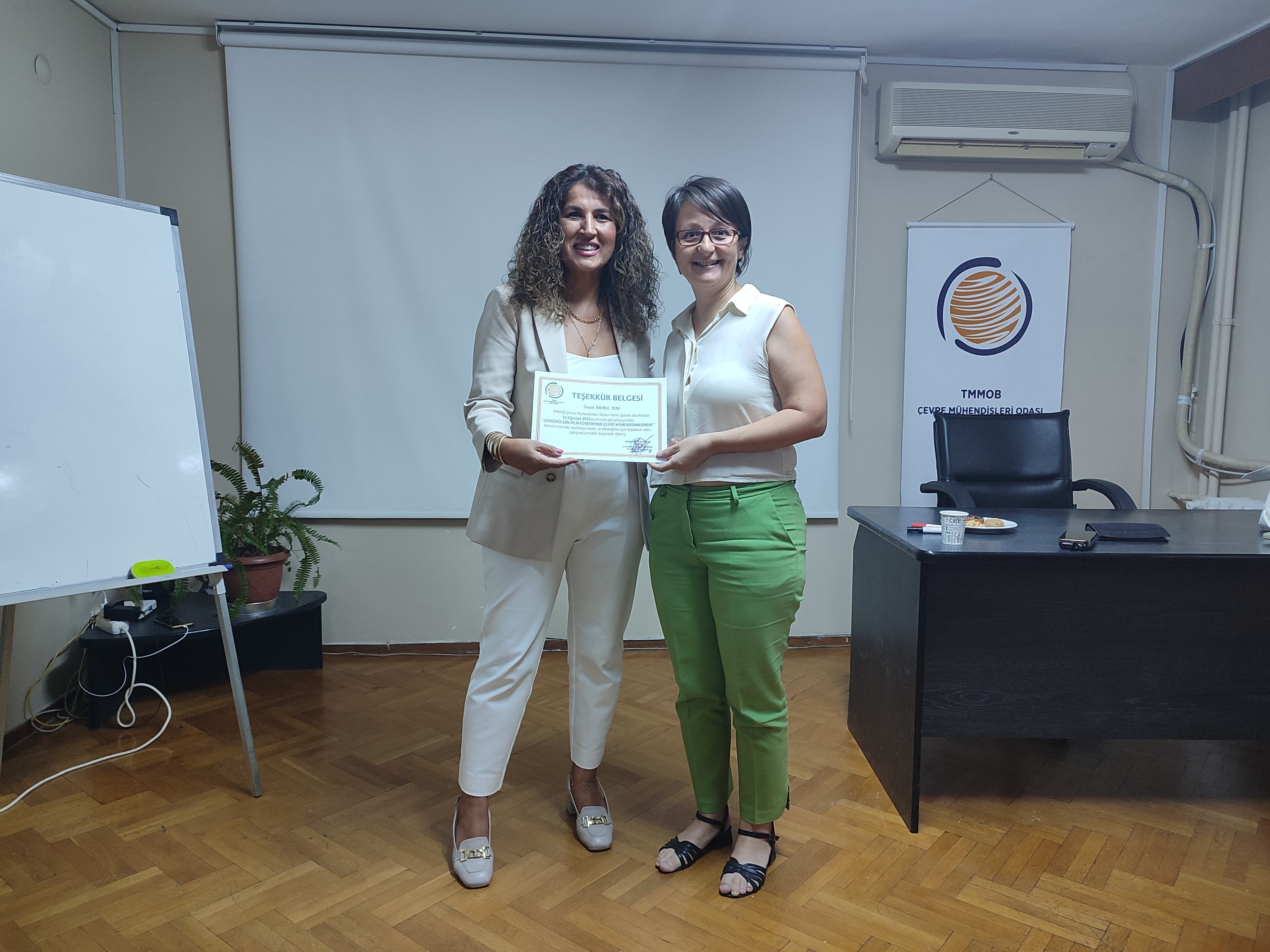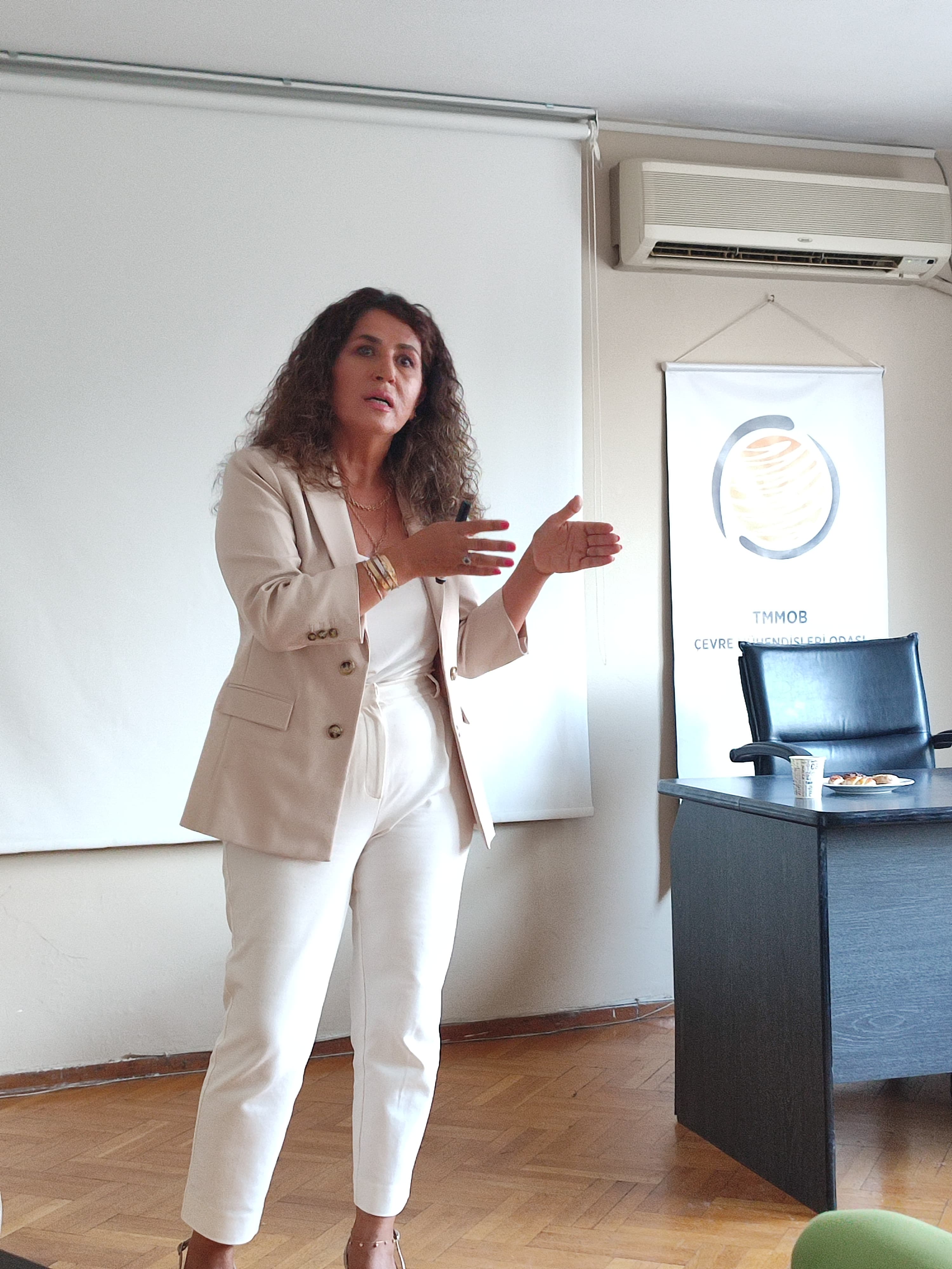 İklim Değişikliği, Enerji ve Sürdürülebilirlik Komisyonu Yürütücümüz Sn. Rahile YENİ`nin konuşmacı olduğu söyleşi kapsamında işletmelerde veya kurumlarda çevresel sürdürülebilirlik süreçleri, sorumluluklar, hedefleri, amaçları, ve çevre mühendislerinin çalışma alanları konusunda genel bilgilendirme yapılmıştır.