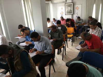 Eğitimin ardından baraj puanı 70 olan 25 soruluk sınav uygulandı.