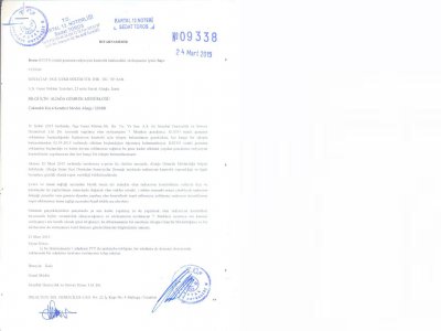 Sökümü gerçekleştirilen parçalarda şu ana kadar yapılmış ya da yapılacak olan radyasyon kontrolleri hususunda hiçbir sorumluluk almayacağımızı ve sözleşmenin uyulmayan 7. maddesi uyarınca söz konusu sözleşmeyi tek taraflı olarak iptal ettiğimizi bilgilerinize sunarız‘‘ diyor.