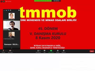 30 Ekim`de İzmir`de meydana gelen deprem dolayısı ile ertelenen Türk Mühendis ve Mimar Odaları Birliği (TMMOB) 45. Dönem V. Danışma Kurulu toplantısı 8 Kasım`da çevrimiçi olarak gerçekleştirildi. Şubemiz Yönetim Kurulu Başkanı Derya Ünver`in katılım sağladığı toplantıda; ertelenen TMMOB Genel Kurulu süreci, dünyadaki ve ülkemizdeki salgın süreci ile ekonomik durum, ülkemizdeki yaşanan gelişmelerin mesleğimize ve örgütümüze yansımaları, TMMOB`un gerçekleştirdiği etkinlikler, TMMOB Çalışma Grupları`nın faaliyetleri, TMMOB örgüt içi toplantıları ve mali konular görüşülmüştür.