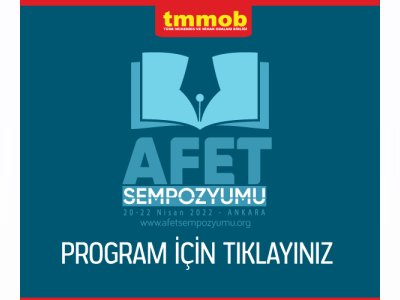 TMMOB tarafından, 20-22 Nisan 2022 tarihlerinde Ankara‘da, TMMOB Makina Mühendisleri Odası Eğitim ve Kültür Merkezinde (Kocatepe Mahallesi Selanik Caddesi No:76 Çankaya/ANKARA) "TMMOB Afet Sempozyumu" gerçekleştirilecektir.