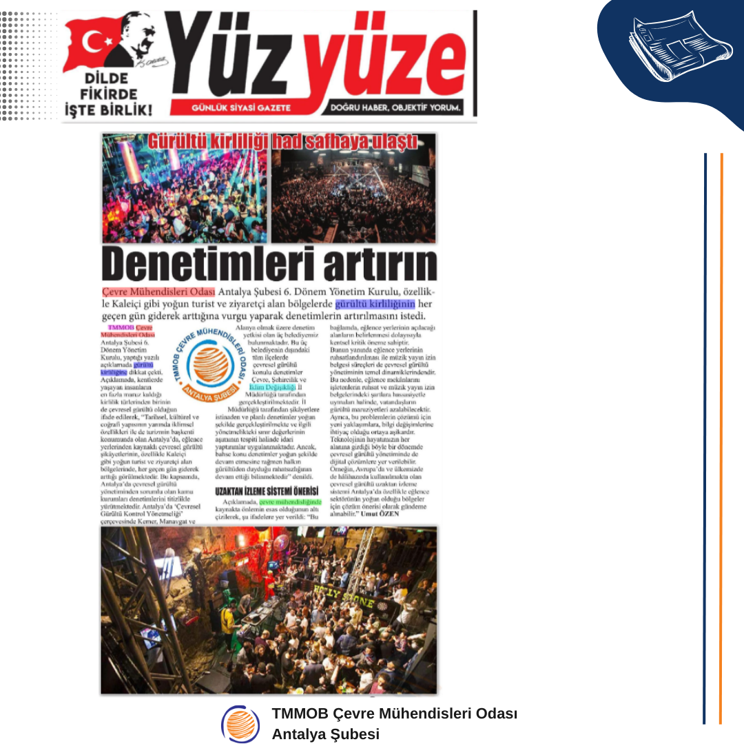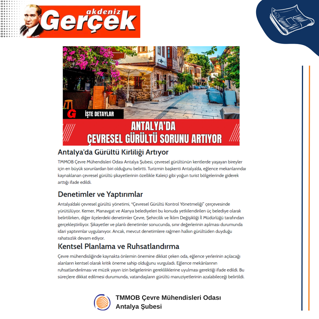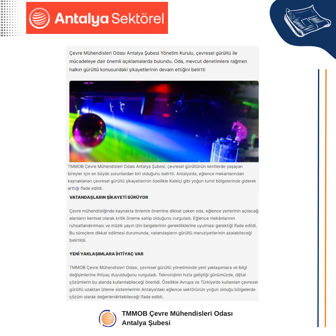 Bu kapsamda, Antalya’da çevresel gürültü yönetiminden sorumlu olan kamu kurumları denetimlerini titizlikle yürütmektedir.