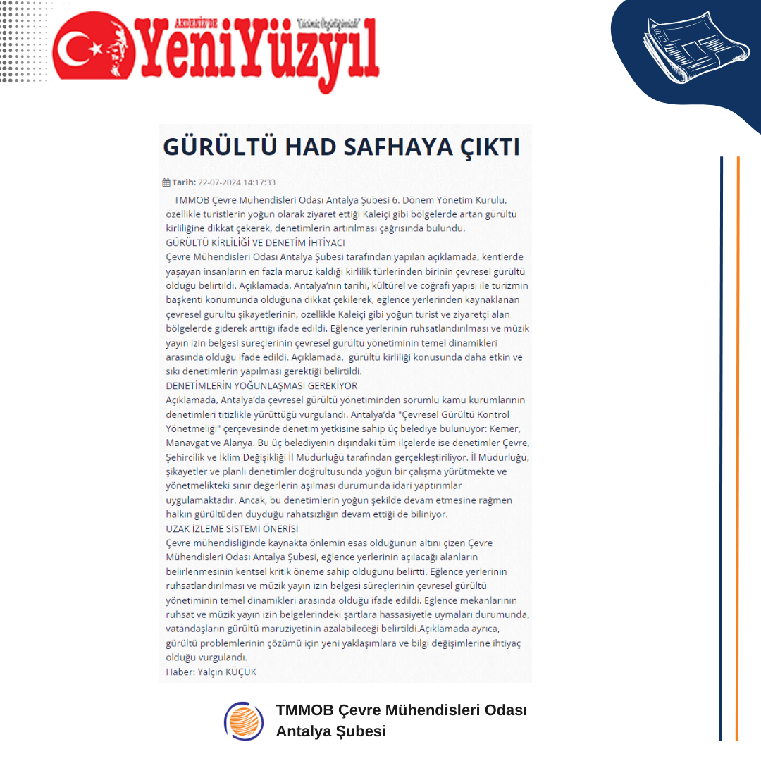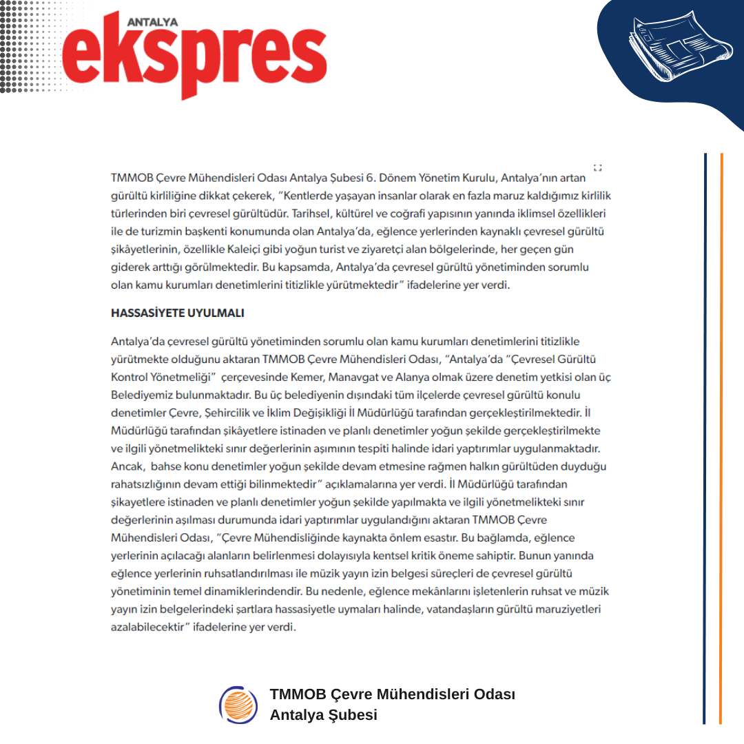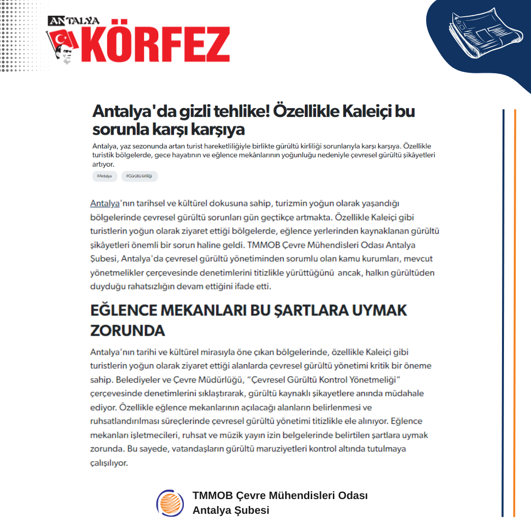 Bu kapsamda, Antalya’da çevresel gürültü yönetiminden sorumlu olan kamu kurumları denetimlerini titizlikle yürütmektedir.