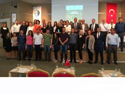 Konuşmacılara sunulan teşekkür plaket töreninin ardından katılımcılar toplu fotoğraf çektirdi.