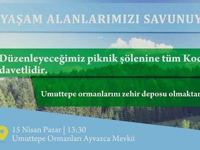 15 Nisan 2018 Pazar günü Evsel Atık Yakma Tesisinin kurulması planlanan Umuttepe Ormanları Ayvazca Mevkii n de piknik yapıyoruz... Tüm Kocaeli Halkını ve üyelerimizi davet ederiz...
