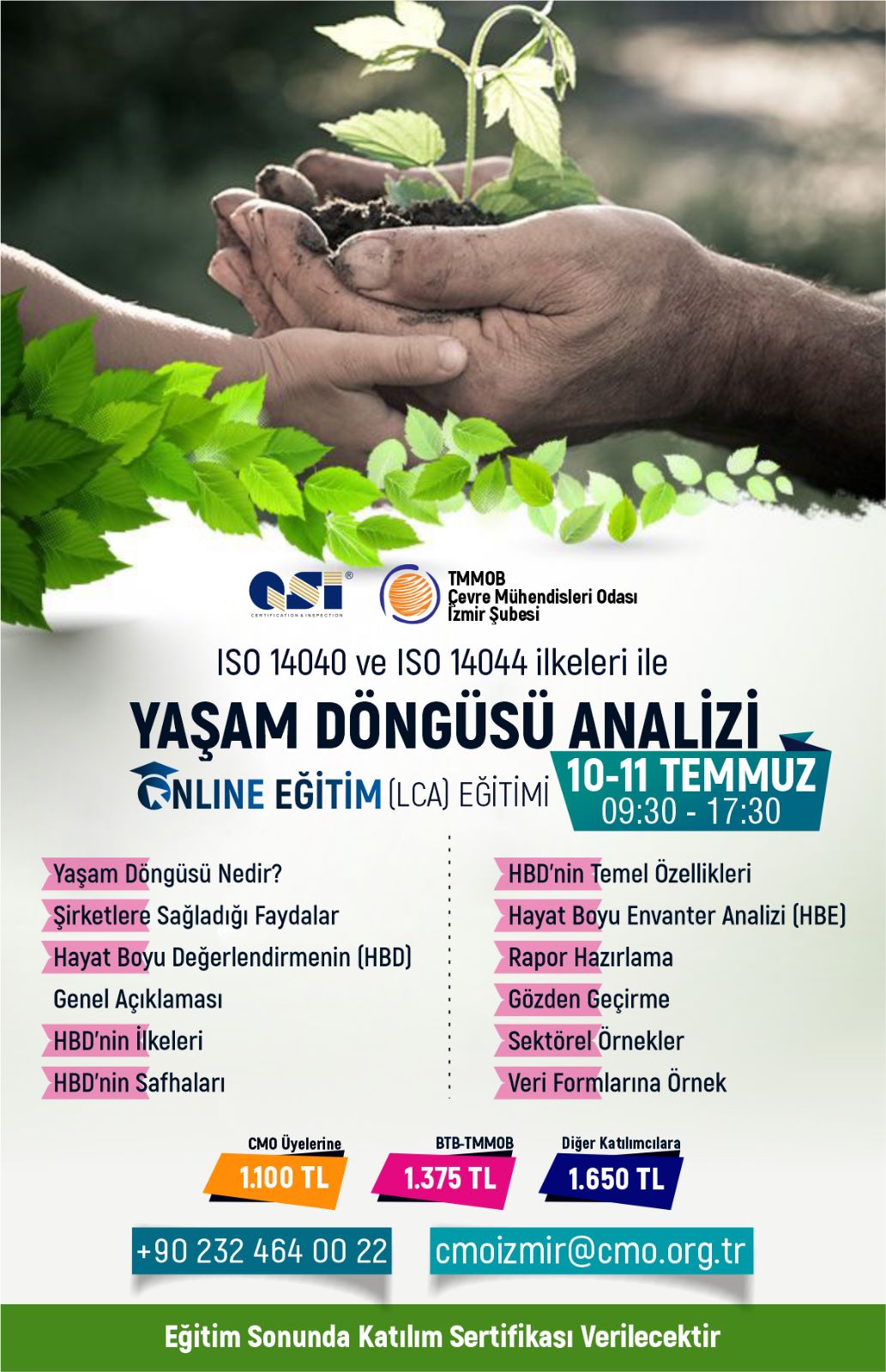 Çevre Mühendisleri Odası İzmir Şubesi olarak, QSI Belgelendirme Muayene ve Test Hizmetleri Ltd. Şti. firması işbirliği 10-11 Temmuz 2023 tarihleri arasında Yaşam Döngüsü Analizi Eğitimi düzenlenecektir. Eğitim duyurusu ekte yer almaktadır.
