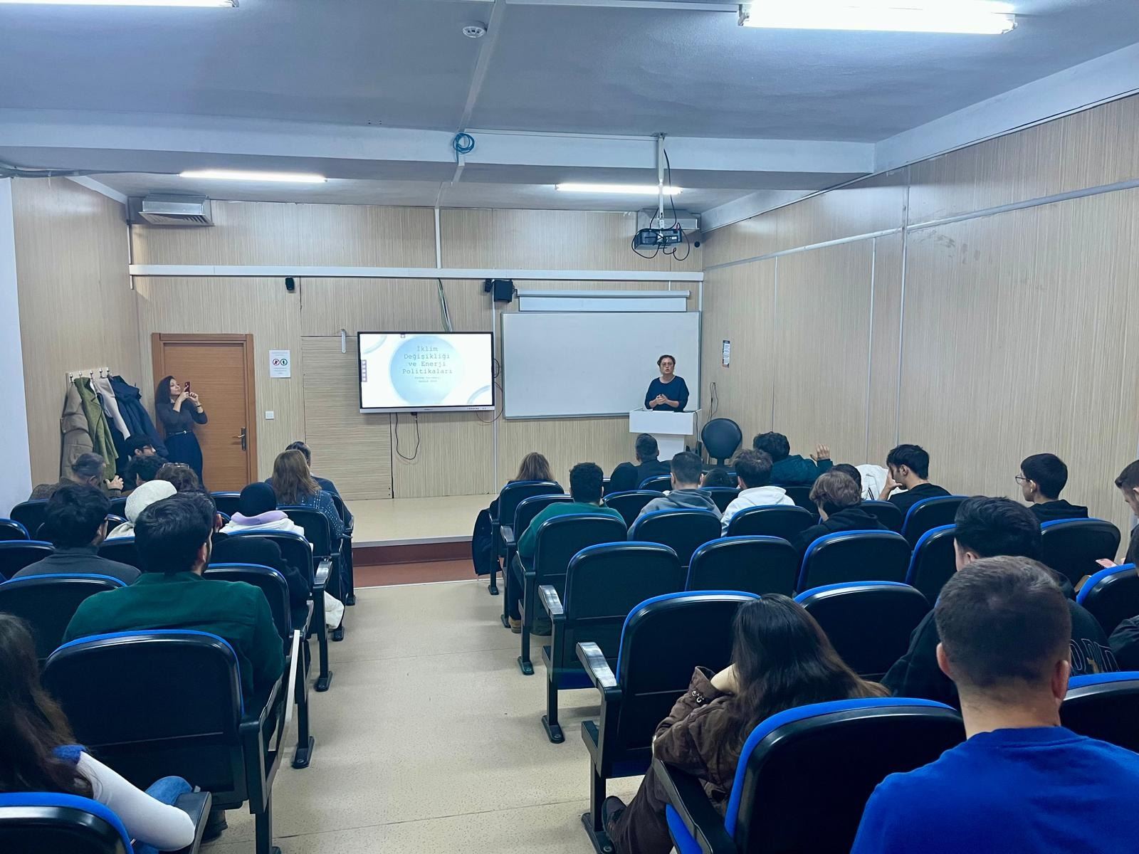 Dr. İlhan Akgün’ün su yönetimi, su ayak izi ve bu konuda gençlerin kampüste yapabileceği çalışmalara yönelik etkileşimli sunumu ile başlayan seminer, ÇMO İstanbul Şubesi Başkanı Zeynep Karamanlı’nın iklim değişikliği ve enerji politikaları ilişkisini aktardığı konuşma ile devam etti.