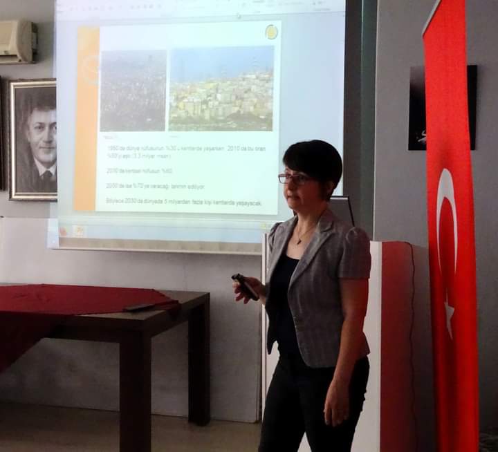 Söyleşi kapsamında kentlerdeki genel çevre sorunları, sağlıklı bir çevre ve kent için ilgili İdareler ve yerel yönetimlerin sorumlu olduğu alanlar konusunda bir sunum gerçekleştirilmiştir.